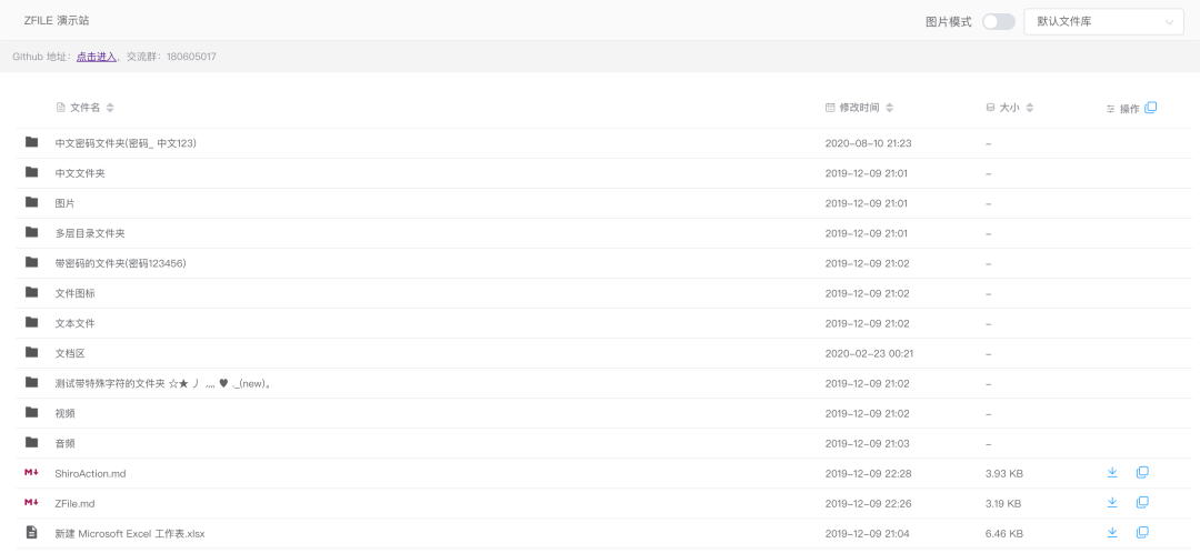 基于 Java 的在线网盘程序,支持对接 S3、OneDrive、SharePoint、又拍云、本地存储、FTP 等存储源,支持在线浏览图片、播放音视频,文本文件等文件类型。