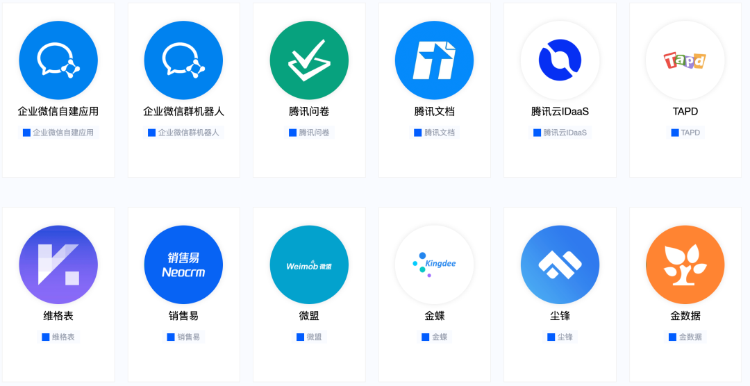 国内大厂也在布局流程自动化,为企业做数字化转型,比如腾讯出品的腾讯千帆场景连接器可以将国内的应用互联互通,包括企业微信、腾讯问卷、腾讯文档、维格表、金数据等。