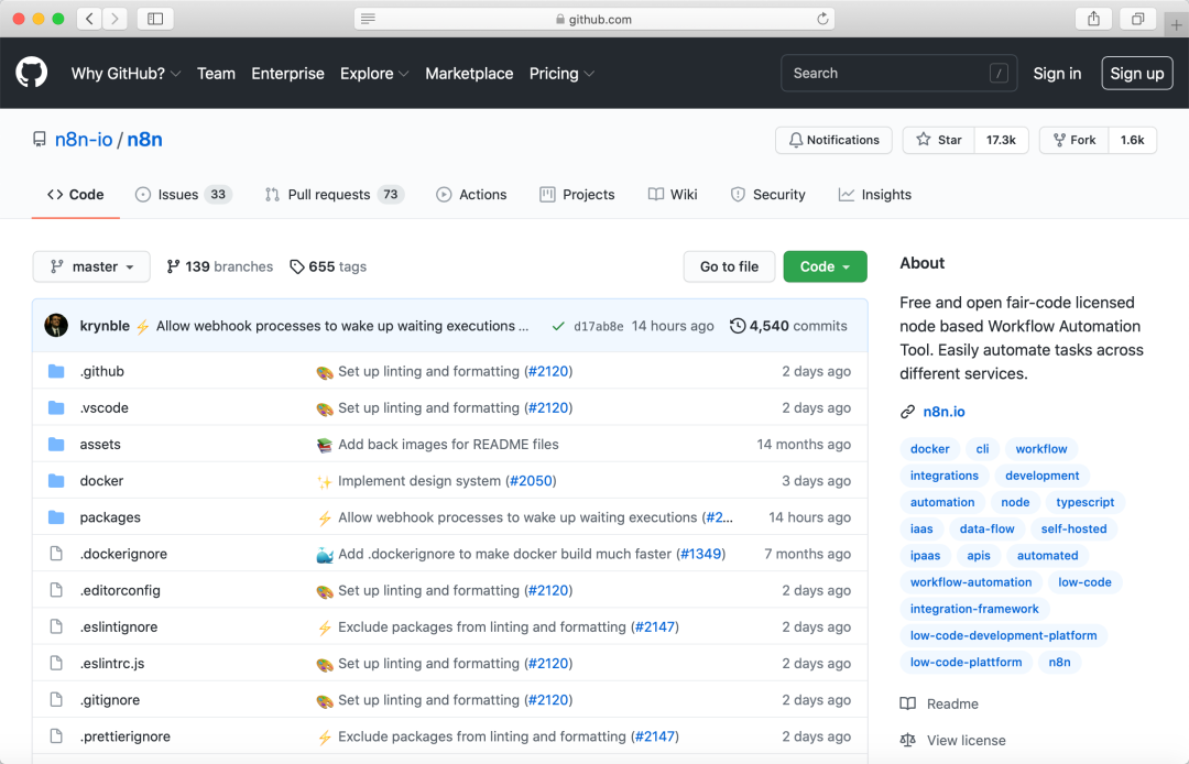 有一款非常火的工作流自动化工具在 GitHub 上开源了,这个名为 n8n 工作流项目在 GitHub 上斩获了 17K 的 Star。