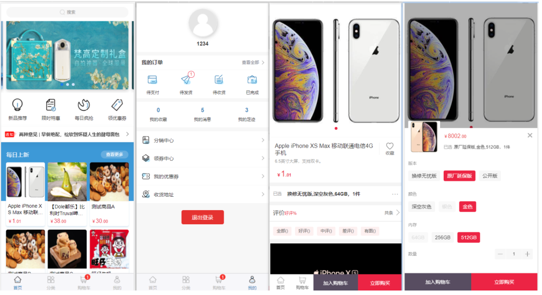 商城功能齐全,前台功能包含购物、订单模块、会员模块、商品模块、首页轮播等模块。后台管理系统包含数据可视化、商品管理、订单管理、会员管理、分类管理等模块。