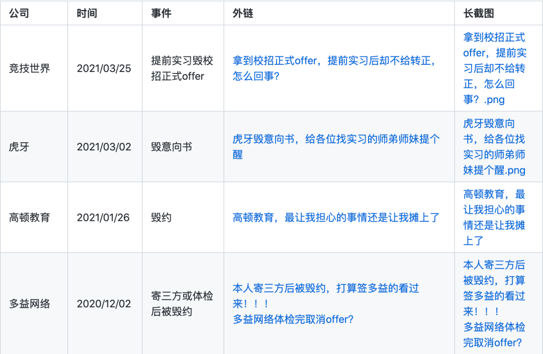 本账号及仓库专用于记录在校园招聘中的具有污点行为的公司。污点行为包括但不限于:毁意向书、毁两方协定、毁三方协定、试用期裁员、大量裁应届生。