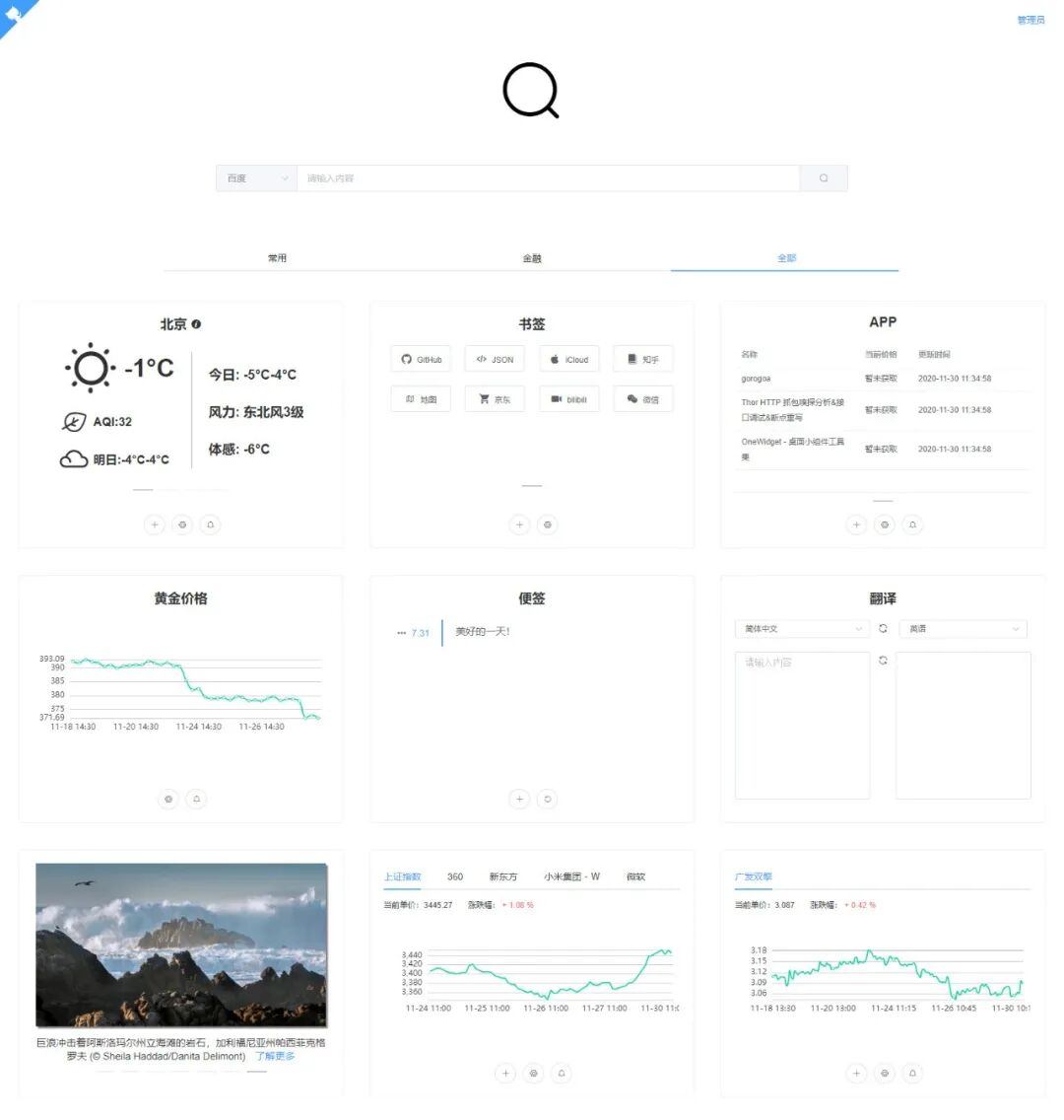 当前大部分导航页类开源项目的可定制度都不高,个人想要关注的信息又过于分散,因此决定自己写一个可以由用户高度定制的导航页,并整合自己所需要的信息和功能。