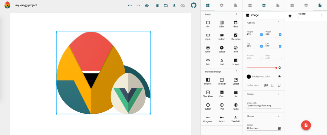 通过将组件直接拖放到可视化编辑器,然后通过简单的交互调整大小,最终通过拖拉拽的方式构建一个 Vue.js 项目。将设计和原型制作合并为一个过程。当你通过拖拉拽设计一个满意的界面时,该前端的代码也帮你写好了,你只需下载代码即可。