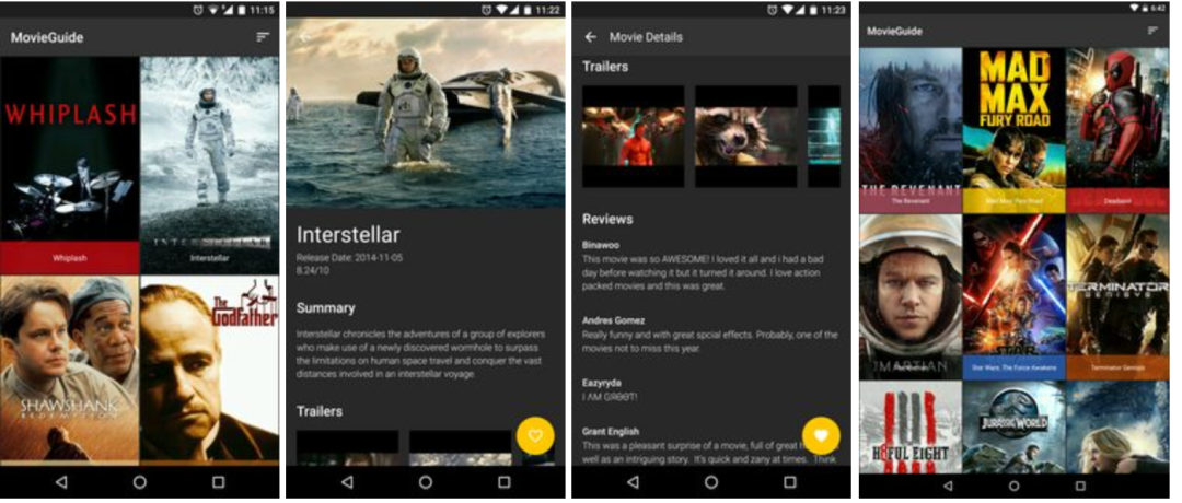 列出热门/评分最高的电影、展示预告片和评论的 Android 应用程序。