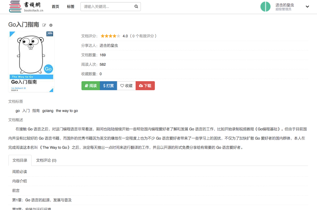 BookStack,基于 MinDoc 开发,使用Beego开发的在线文档管理系统,功能类似 Gitbook 和看云。