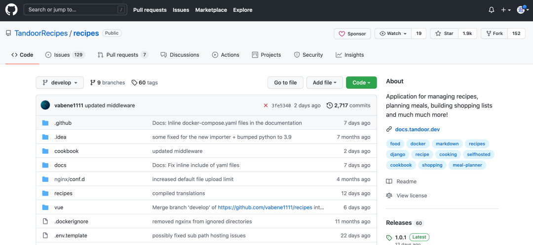 推荐一个用于管理食谱、计划膳食、建立购物清单的开源应用程序:Tandoor Recipes。该开源项目在 GitHub 上已经获得 1.9k 的 Star。
