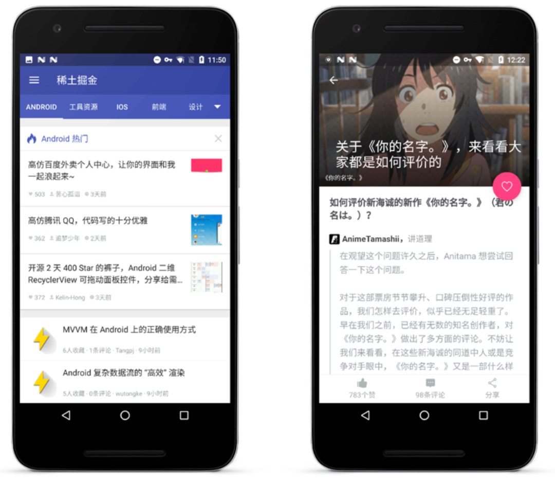作者出于学习的目的做了这款 Material Design 风格的简洁的阅读应用,基本涵盖了当前Android 端开发最常用的主流框架。