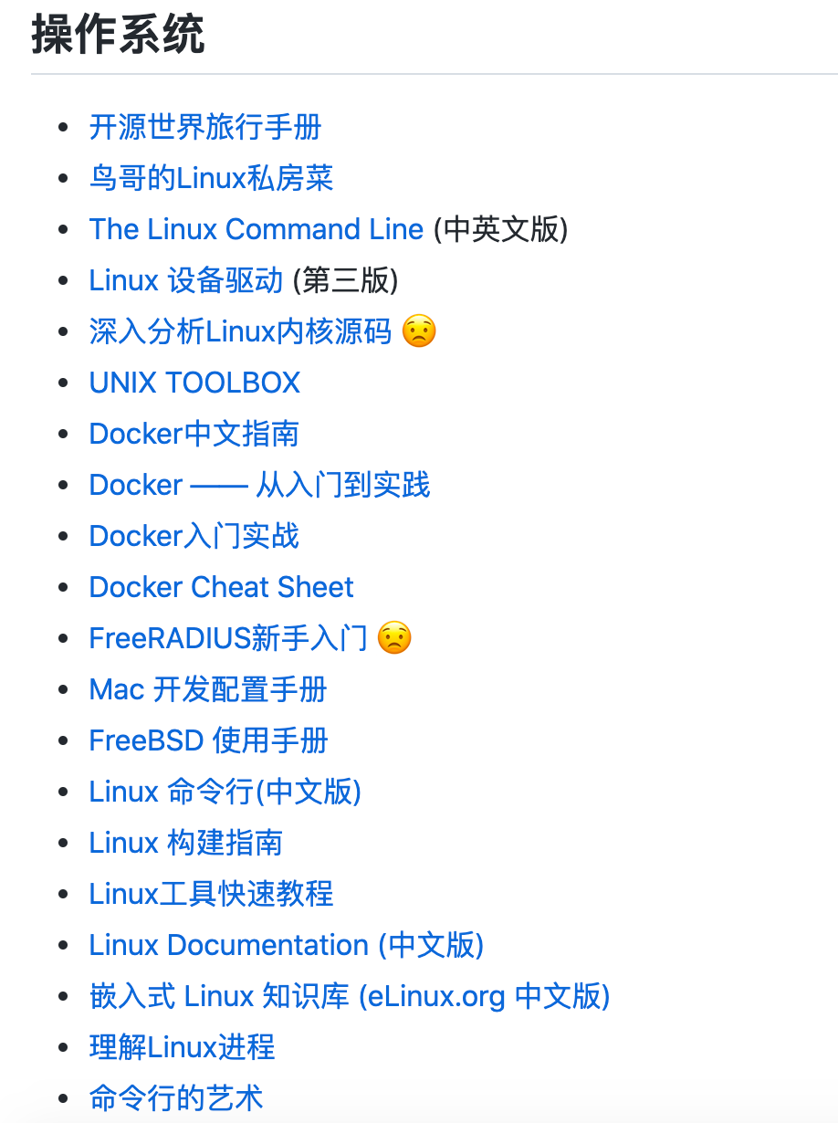 还有操作系统相关书籍,比如鸟哥的 Linux 私房菜、Docker入门实战等等都是比较推荐的书籍。