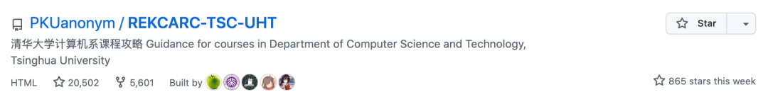 最近一个开源项目登上了 GitHub 周榜,项目描述为:”清华大学计算机系课程攻略“。