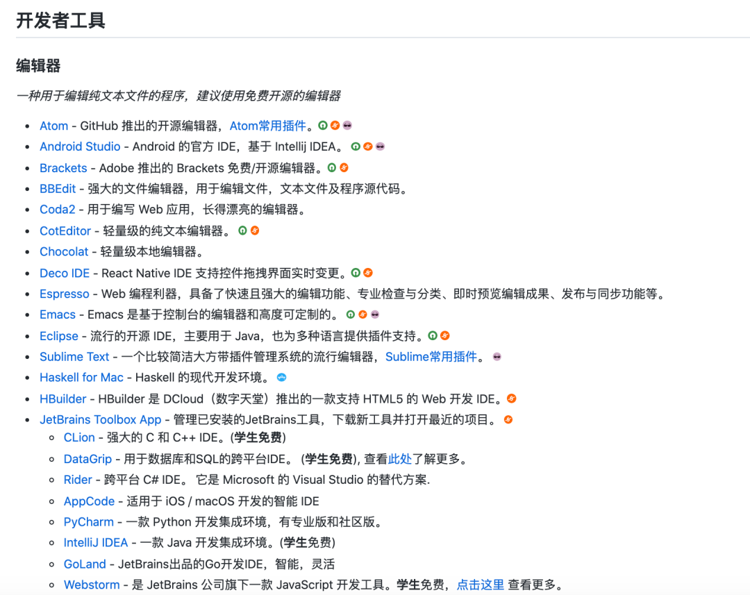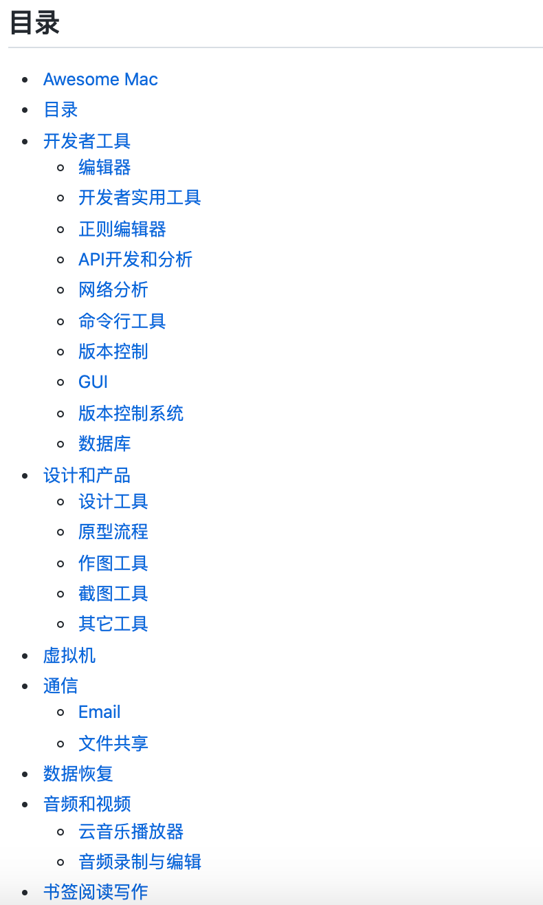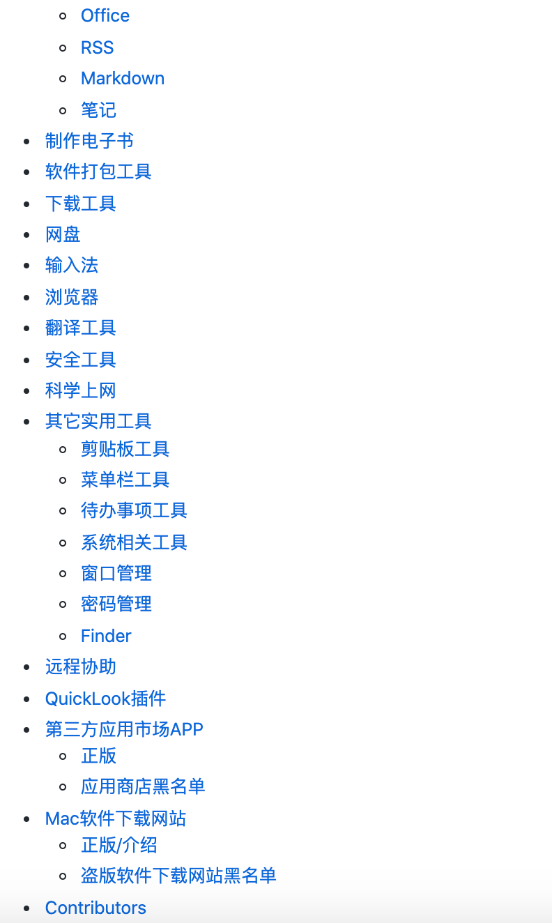 这个开源项目收集了数万个 Mac 系统好用的软件,并且按照分类进行归类,主要分类如下: