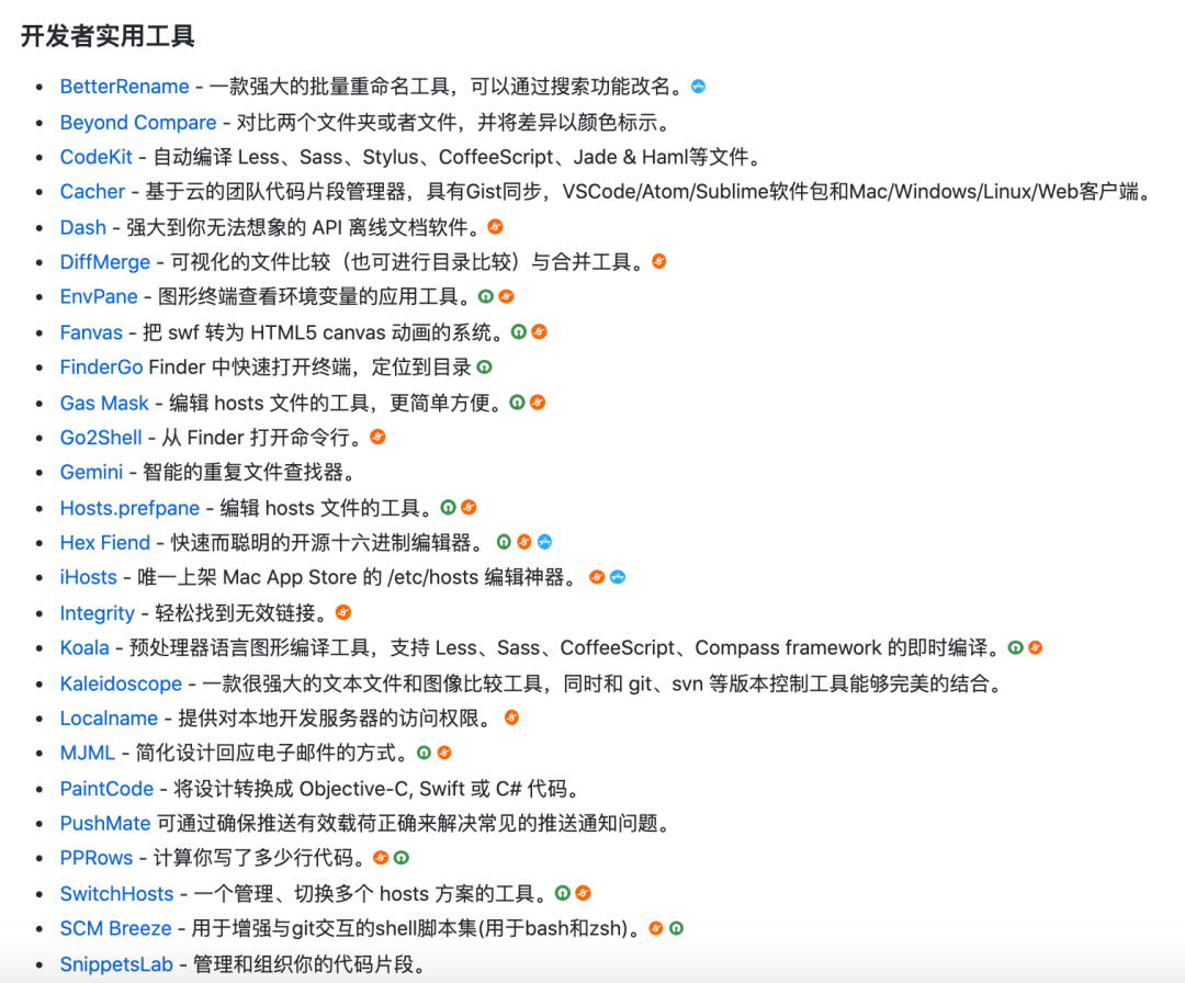 各类资源汇总到一个开源项目,叫做:awesome,该项目的介绍日后再说。今天来说一下 Awesome-Mac。