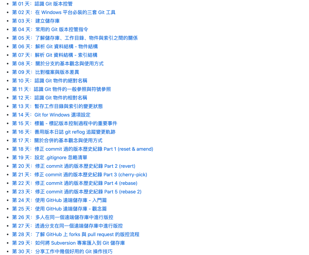 地址:https://github.com/doggy8088/Learn-Git-in-30-days