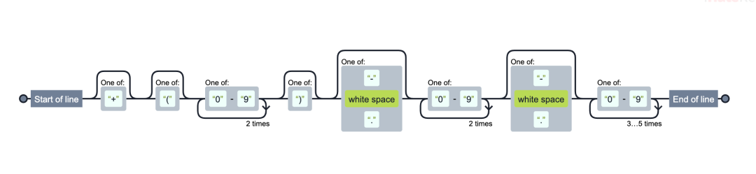不仅能显示某场景的正则表达式是什么,还能将正则表达式进行可视化展示。
