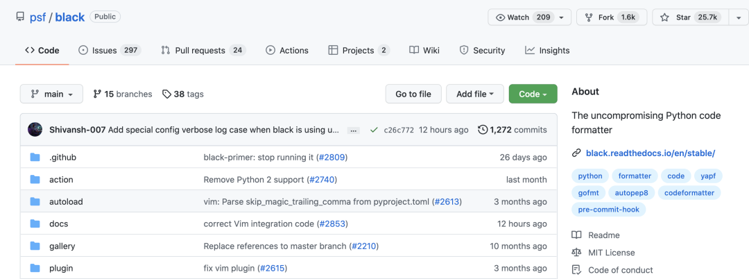 开源地址:https://github.com/psf/black