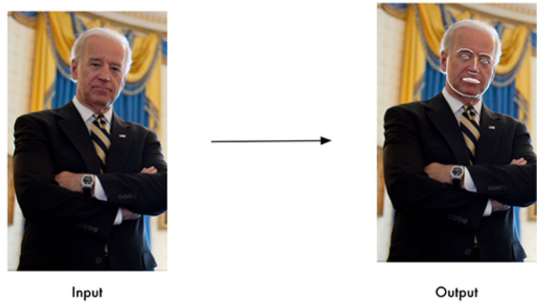import face_recognitionknown_image = face_recognition.load_image_file("biden.jpg")unknown_image = face_recognition.load_image_file("unknown.jpg")biden_encoding = face_recognition.face_encodings(known_image)[0]unknown_encoding = face_recognition.face_encodings(unknown_image)[0]results = face_recognition.compare_faces([biden_encoding], unknown_encoding)