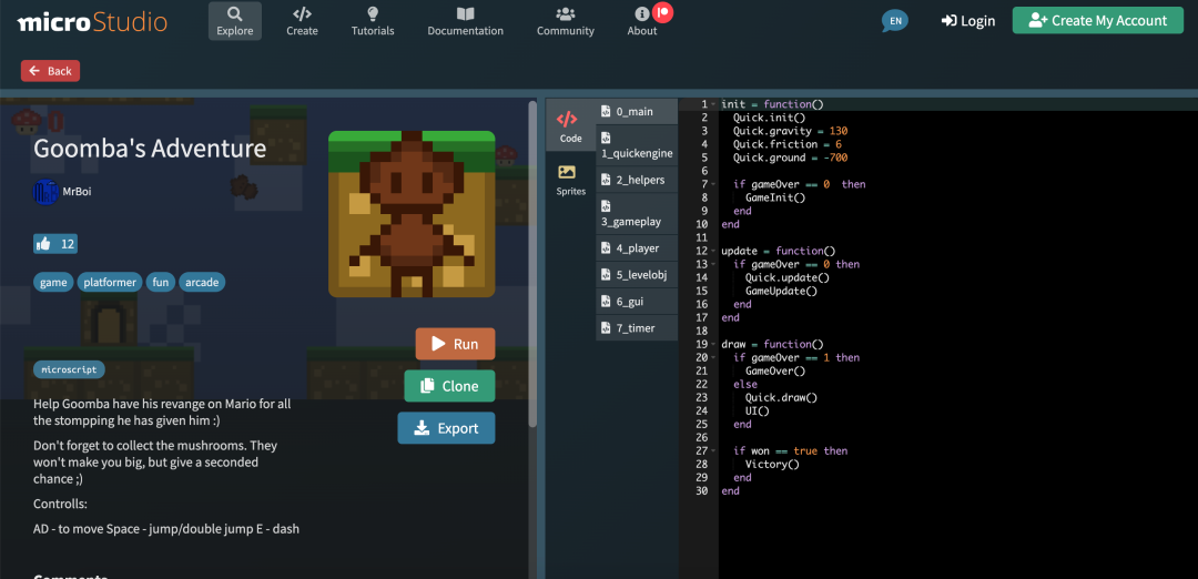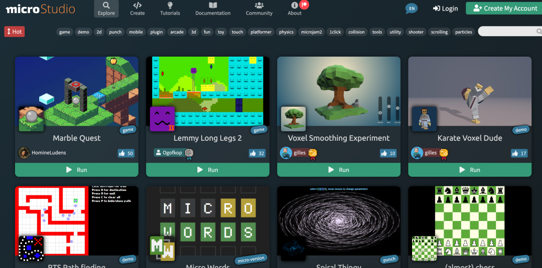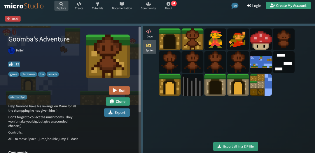 如果想要开发游戏,但是没有游戏素材或者不知道如何下手,可以了解一下 microStudio 这个项目。当然这也是一个学习和分享平台,支持的语言包括:microScript、JavaScript、Python 和 Lua。