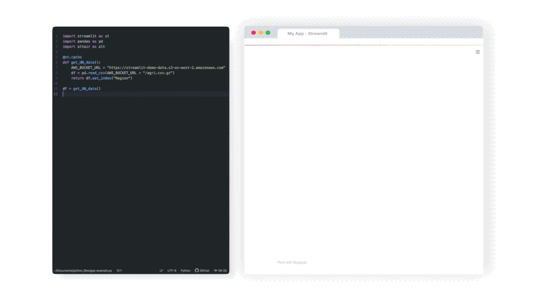 Streamlit 能够快速地把数据转化成可视化、交互页面的 Python 框架,分分钟让你的数据变成图表。该项目提供免费的共享平台帮你的项目上线,方便数据的共享和讨论,支持 Windows、mac 和 Linux。