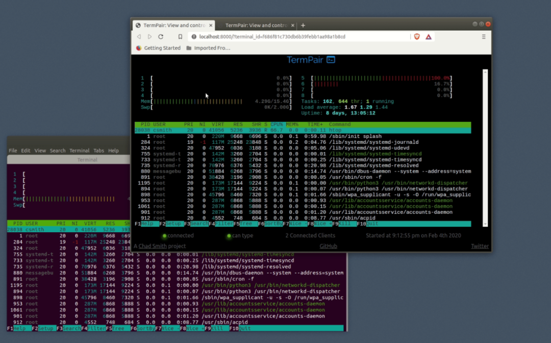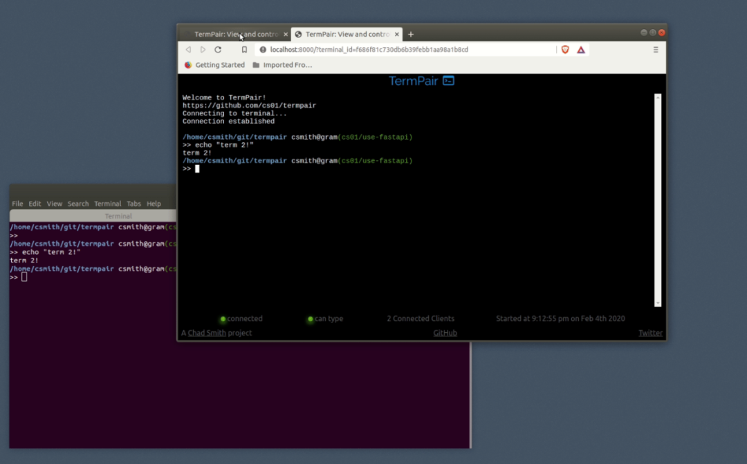 TermPair 让开发者能够实时共享和控制终端,通过端到端加密,从你的浏览器查看和控制远程终端,特别适合服务器非桌面系统的环境。