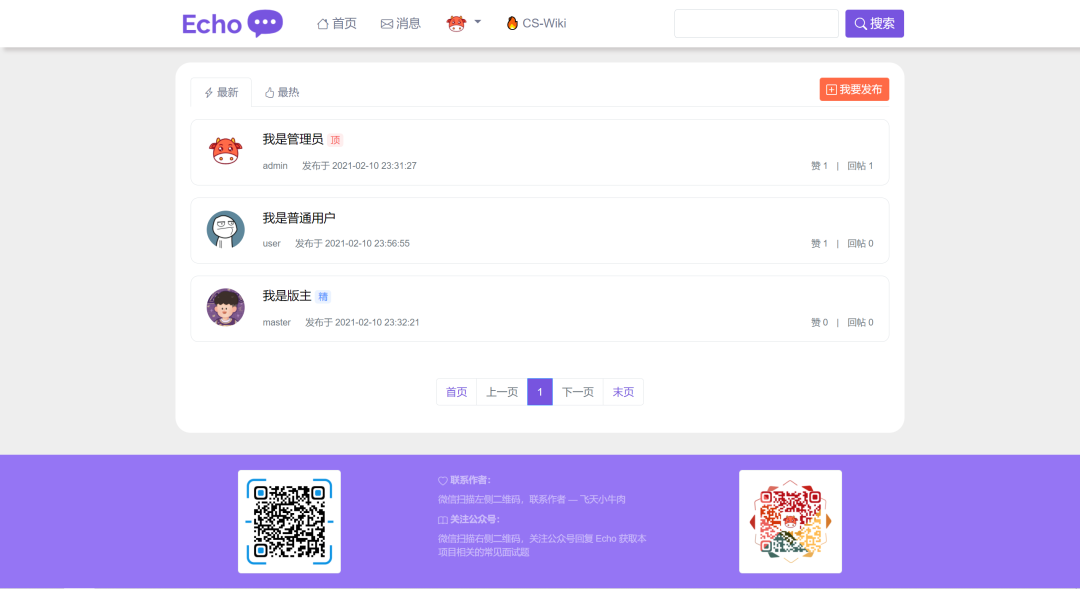 推荐一款开源社区系统,该系统基于主流的 Java Web 技术栈,如果你是一名 Java 新手掌握了基本 JavaEE 框架知识,可以拿本项目作为练手项目。