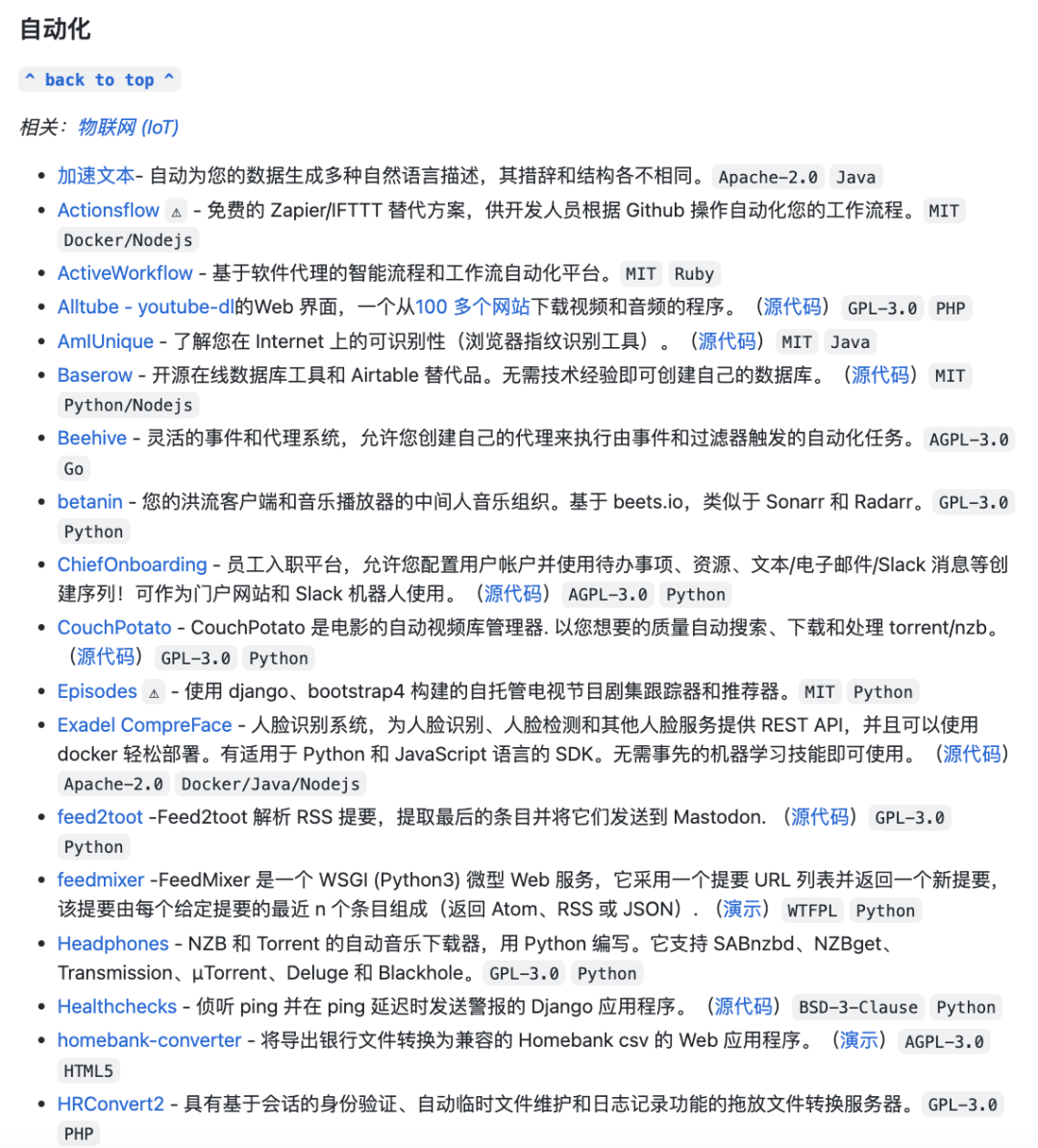 6. 海量「自托管服务」项目的列表