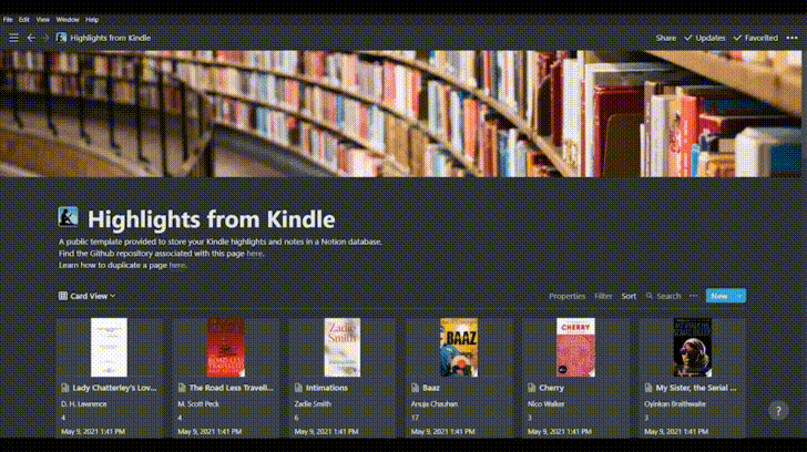 将 Kindle 亮点和笔记复制到 Notion 页面的程序。这是一个 Python 包,当你将 Kindle 设备插入 PC 时运行此脚本。