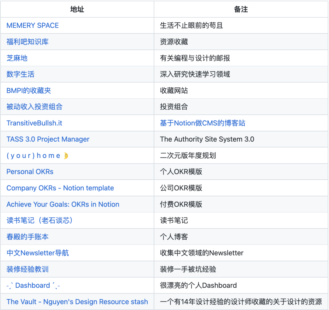 这个开源项目收集了 Notion 中不错的主页,内容涉及编程、旅游、投资、读书笔记等等。