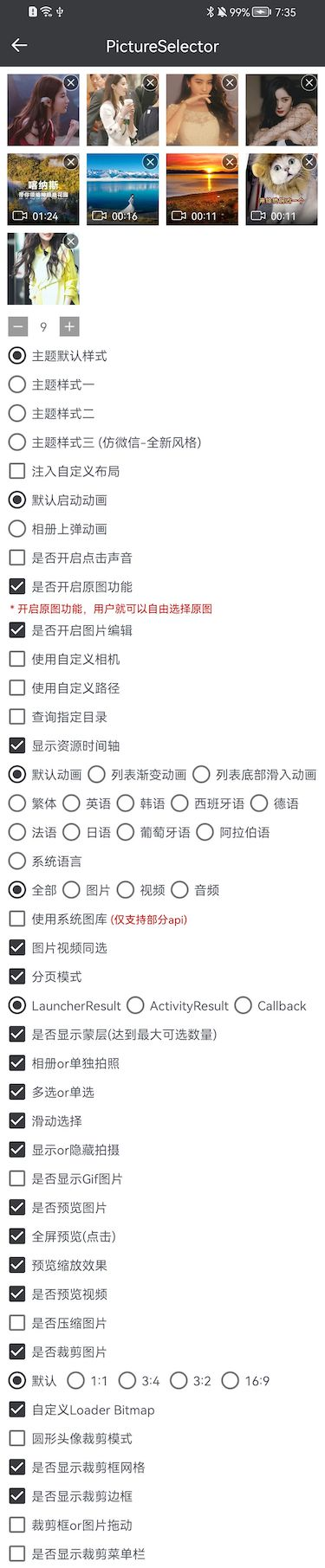 一款 Android 平台的 PictureSelector,支持从相册中获取图片、视频、音频和照片,剪切(单图或多图剪切)、压缩、主题自定义配置等功能,支持动态访问和开源的图片选择框架适用于 Android 5.0+ 系统。