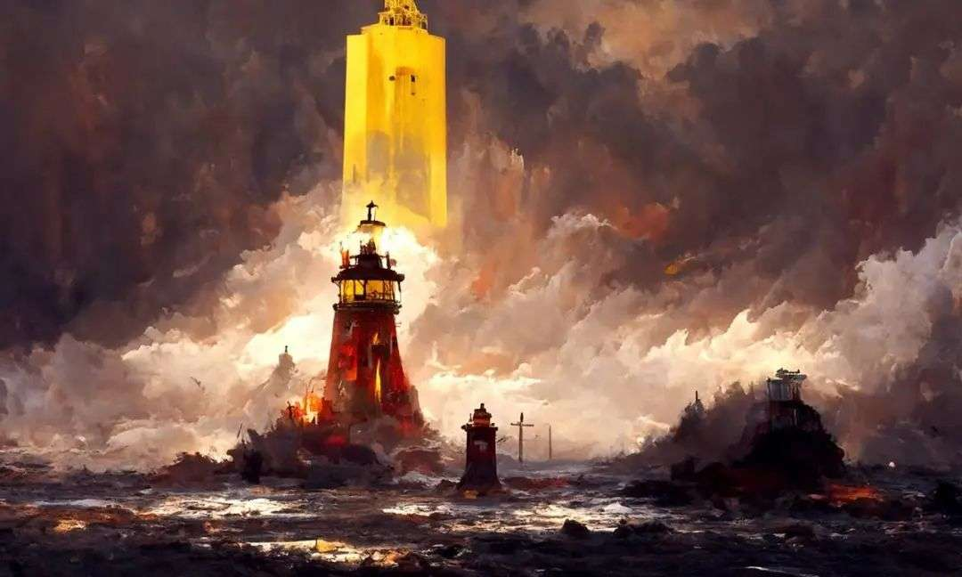 嘴上一句话,电脑自己画。当你输入:“一张海上灯塔”,等了一会 AI 输出了这张图片: