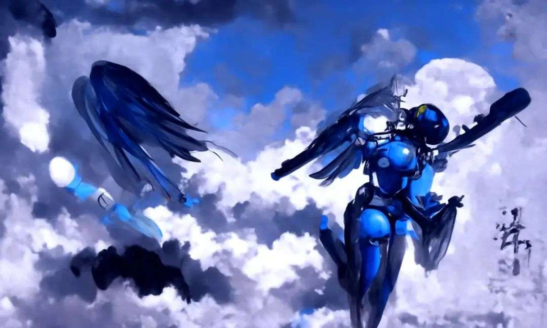 当你输入:“一张机械天使在夜空中挥动翅膀的画 蓝色配色”,AI 又拿起了画笔,待会儿你会看到: