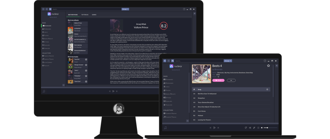 如果你知道 mps-youtube 这个项目,该项目与之类似,但是我们提供了一个美观、强大的图形用户界面。nuclear 更加的专注于音频。想象一下Spotify,你无须为音乐付费,而且你比Spotify有更多的音库来源的选择。