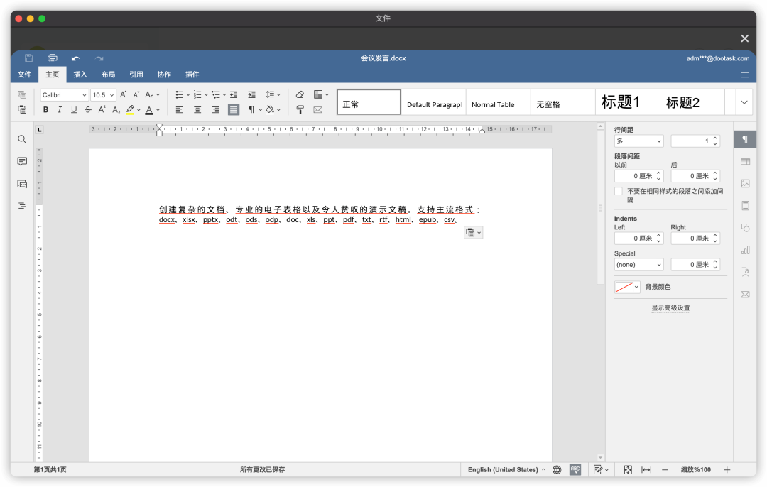 7. 创建复杂的文档、专业的电子表格以及令人赞叹的演示文稿、支持主流格式:docx、xlsx、pptx、ods、doc、txt、ppt等。