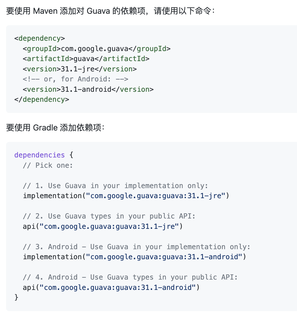 Guava 是一组来自 Google 的核心 Java 库,其中包括新的集合类型(例如 multimap 和 multiset)、图形库以及用于并发、I/O、缓存、字符串等的实用程序!它广泛用于 Google 内部的大多数 Java 项目,也被许多其他公司广泛使用。