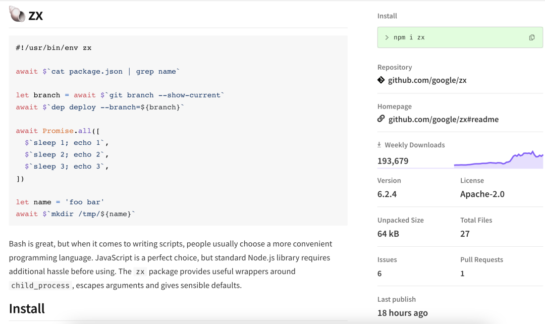 如果你尝试编写一个在 Node.js 下运行的 Shell 脚本,你可能会发现它并不像你希望的那样流畅。而Google 的 zx 库有助于使用 Node.js 高效且愉快地编写 Shell 脚本。
