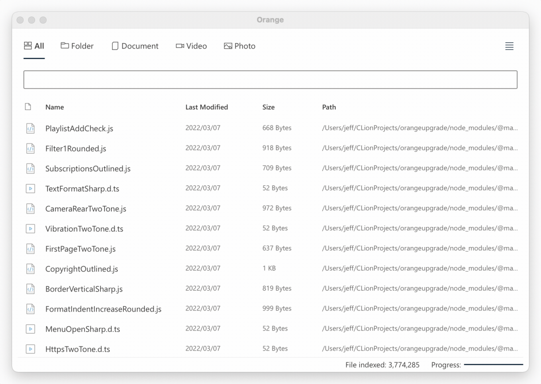 Orange是一款跨平台的文件搜索引擎。由开发者 @naaive 创建该项目。使用简单,自带中文简繁体分词、拼音、补全、高亮,支持毫秒级搜索响应。