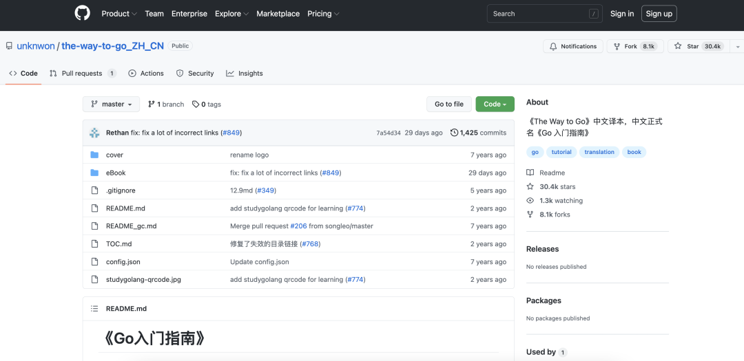《The Way to Go》中文译本,中文正式名《Go 入门指南》。开发者在完成阅读 《The Way to Go》 之后,决定每天抽出一点时间来进行翻译的工作,并且以开源的形式免费分享给有需要的 Go 语言爱好者。