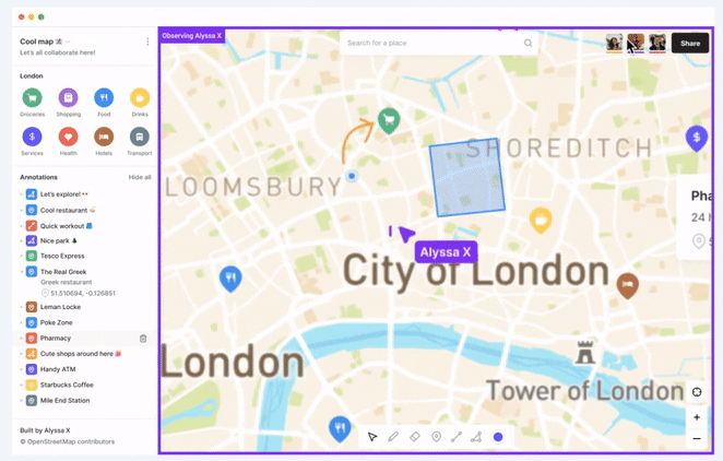 Mapus 是一种在地图上协作探索和注释的工具,开源一年获得了近 3K 的 Star。使用该开源项目你可以在地图上绘制、标记、画出区域等等,想当于在普通的地图上增加了实时协作的功能。
