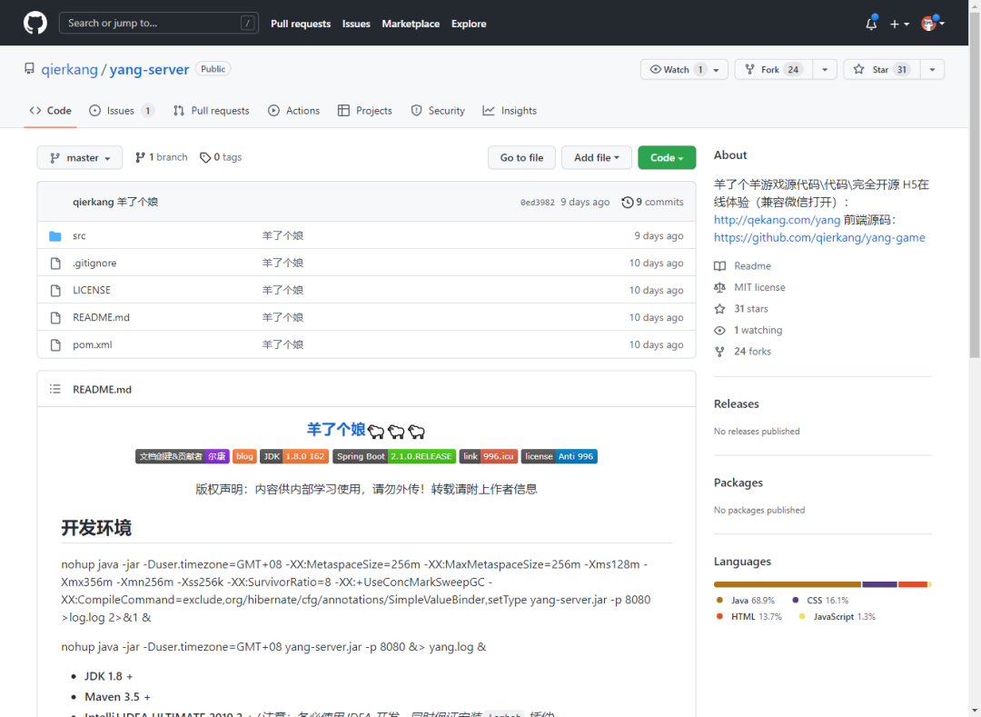 开源地址:https://github.com/qierkang/yang-game开源地址:https://github.com/qierkang/yang-server