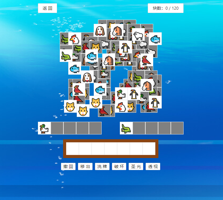 相比于羊了个羊游戏,UI 方面是有些简陋了 但是增加了一些小程序内没有的能力,比如圣光、透视等等。