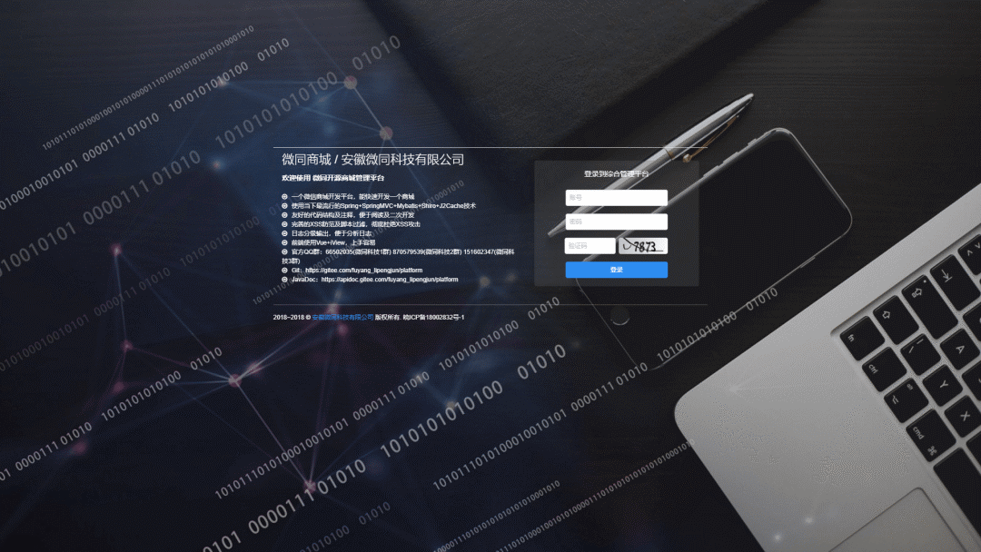后端采用 Spring 技术栈,使用到的框架主要包括:Spring、MyBatis、MyBatis-Plus、Shiro、Druid、Fastjson、MySQL等技术。前端技术:Vue、iview、Jquery、Bootstrap、jqgrid、ztree等技术。