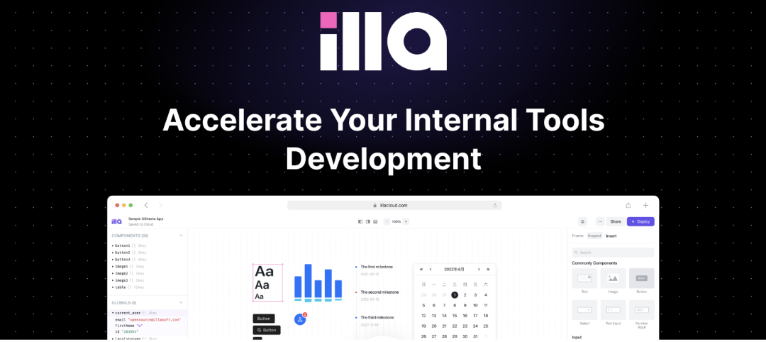 ILLA 是一个强大的开源低代码平台,已经获得 4.2K 的 Star。该低代码平台供开发人员构建内部工具。通过使用 ILLA 的组件和操作库,开发人员可以节省大量构建工具的时间。