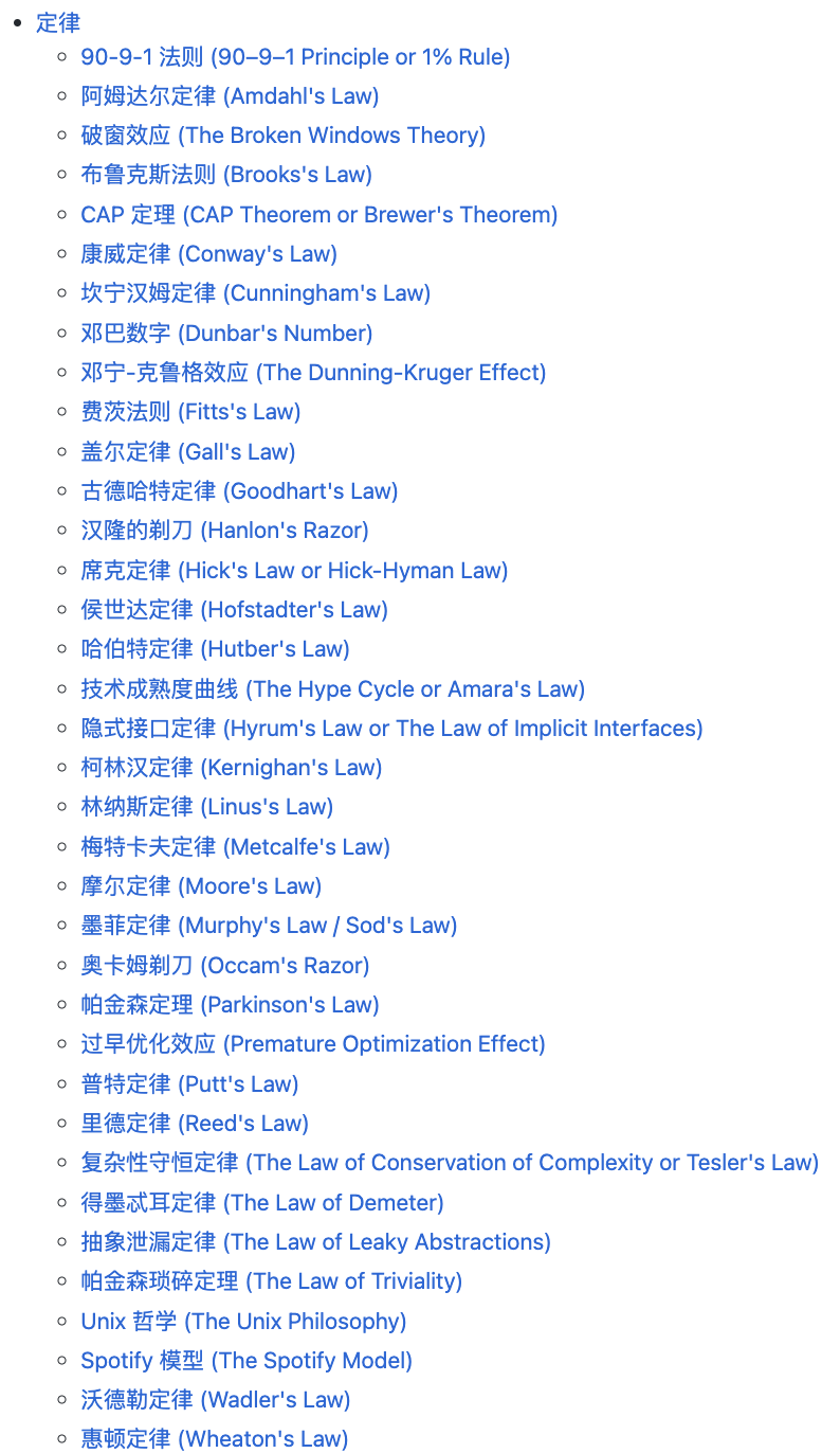 hacker laws 致力于将各种计算机和编程相关的法则、定理、原则等翻译成中文。