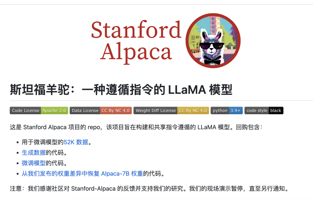 开源项目:https://github.com/tatsu-lab/stanford_alpaca