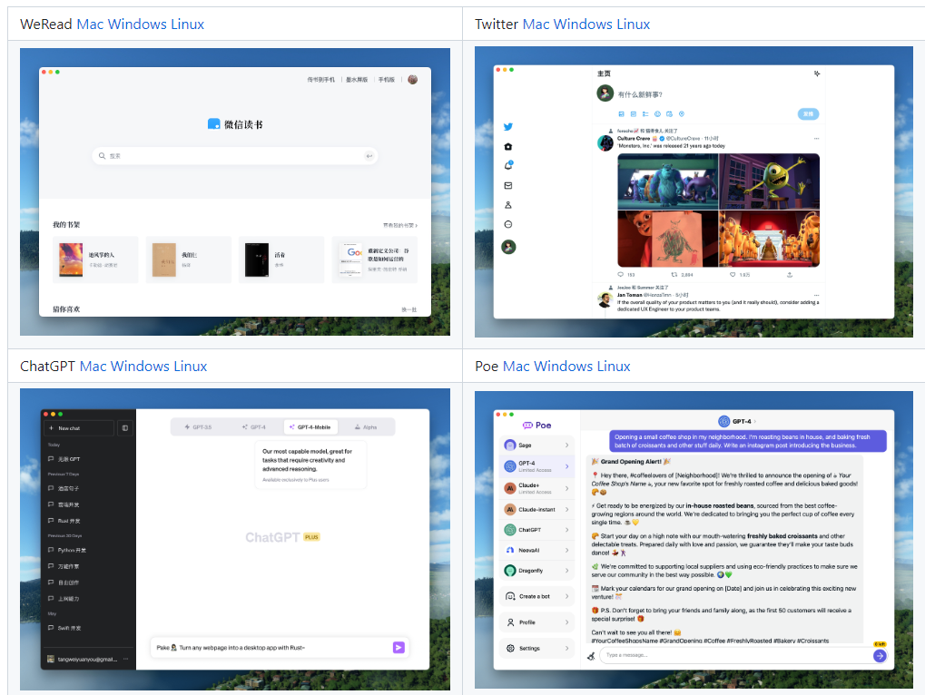 基于 Rust Tauri 框架开发的网页打包工具:Pake, 一键将网页打包成很小的桌面 App。相比传统的 Electron 套壳打包,使用 Pake 要更小更轻量。