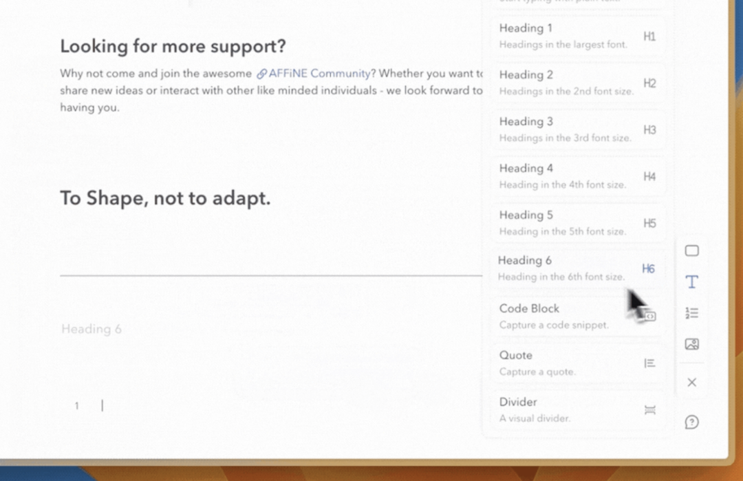 类似于 Notion 的 Block ,AFFINE 也有很多灵活的组件可以使用,还支持离线使用、多人协助、Markdown 编辑能力。
