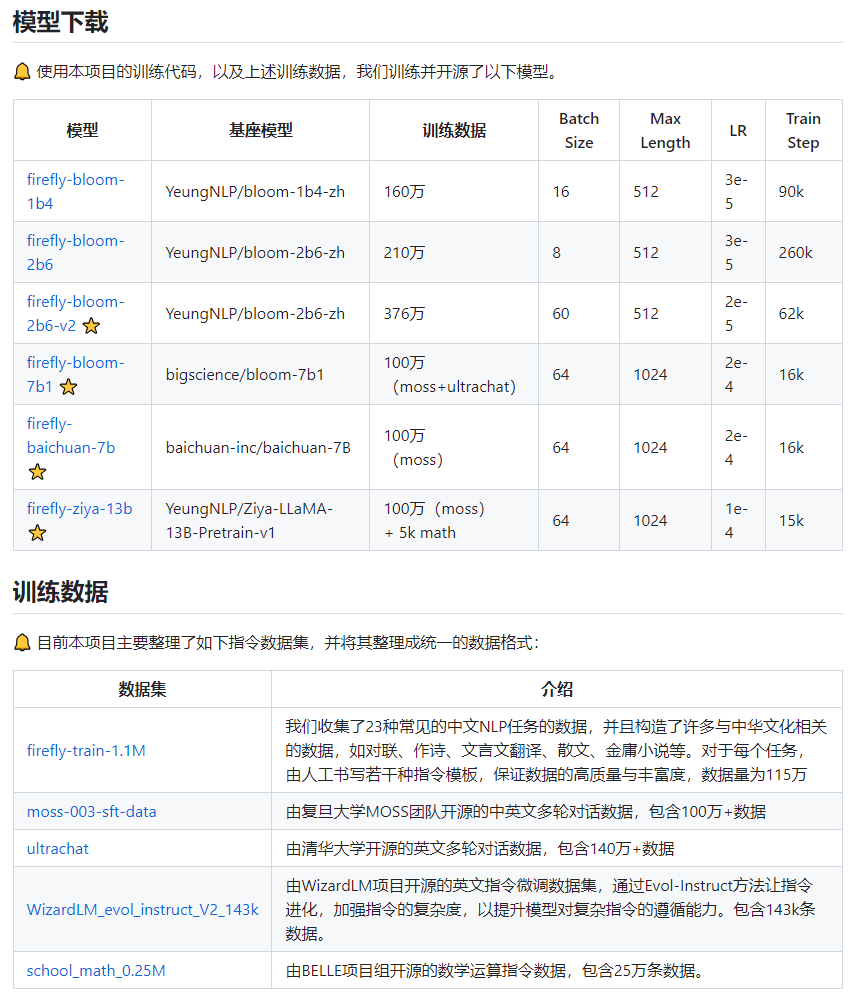 Firefly(流萤) 是一个开源的中文大语言模型项目,在 Open LLM 排行榜排名第 10。该开源项目提供了 6 个版本的开源项目进行下载,还提供了 5 个数据集。