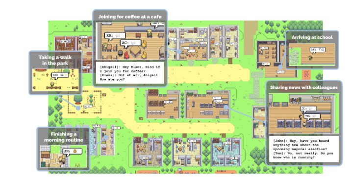 这是一篇论文的源码,论文讨论内容很有意思。在一个小镇住着 25 个小人,每天一个小人都是基于 GPT,他们能在这个小镇自由活动、交流。