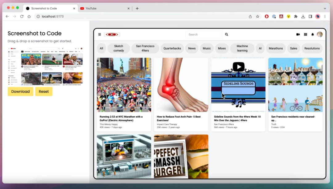 它利用了 GPT-4 Vision 来生成代码,并使用 DALL-E 3 来生成外观类似的图像。