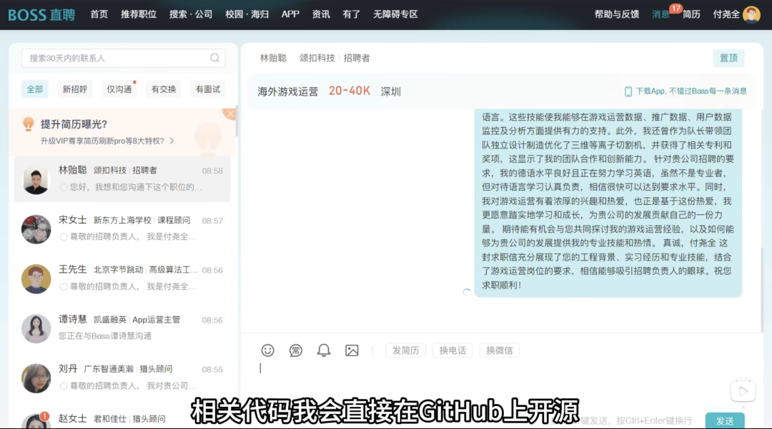 开源地址:https://github.com/Frrrrrrrrank/auto_job__find__chatgpt__rpa