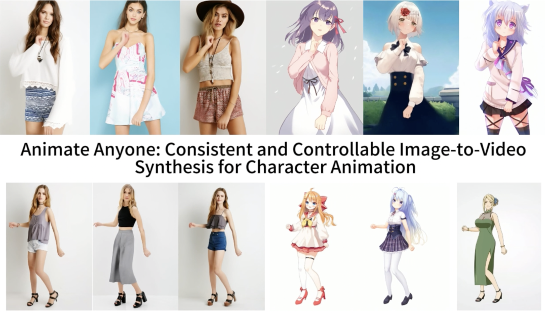 AnimateAnyone 是一个开源项目,主要研究一致性和可控的图像到视频合成技术,用于角色动画。该项目的目标是将静态图像转化为动态视频,实现角色动画的生成。