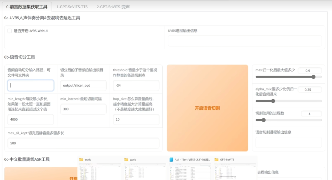 跨语言支持:可以用与训练数据集不同的语言进行推理,目前支持英语、日语和中文。集成了一些工具,包括声音伴奏分离、自动训练集分割、中文 ASR 和文本标签,帮助初学者创建训练数据集和 GPT/SoVITS 模型。